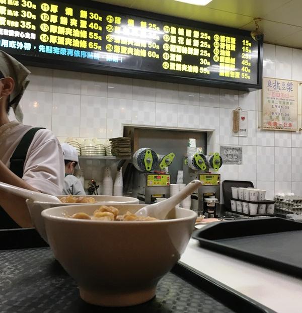 6:20に到着した時、列は階段の踊り場あたりでした。15分待って注文完了。鹹豆漿のほかに、玉子焼きパンも買って、二人で分けましたが、おなかいっぱいで食べきれないほどでした。並んでいる間も作っている様子が見れて面白いです。