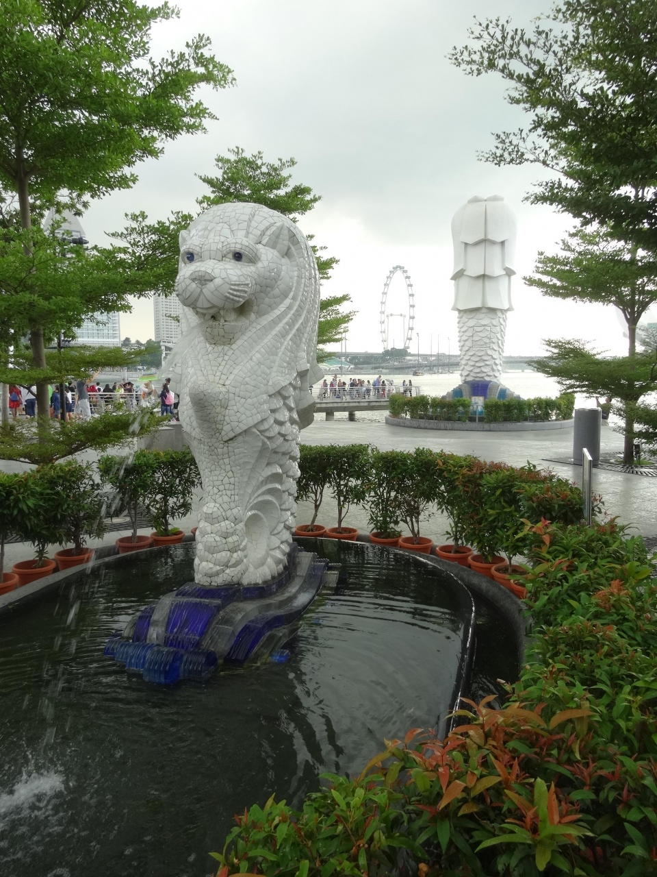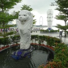 マーライオン周辺の水辺はマーライオン公園として整備されています。本家マーライオンと背中を合わせるように、ミニマーライオンも公園内にいます。本家と同じように、水をはいていました。写真撮影ベストスポットです。