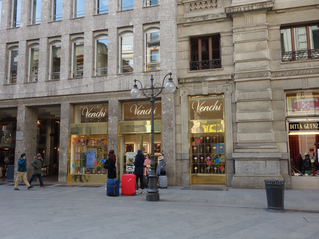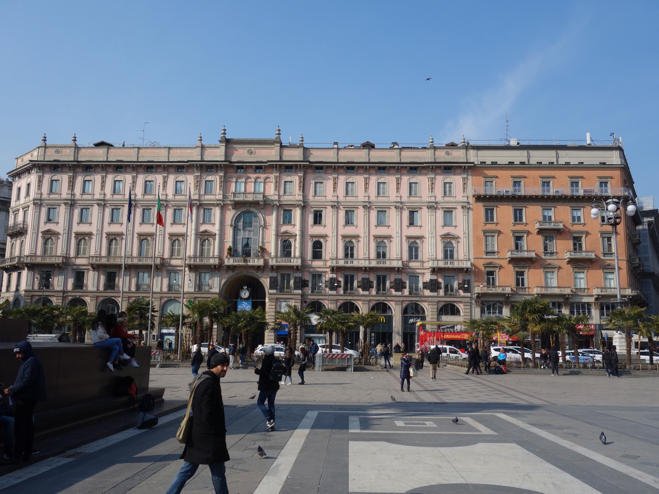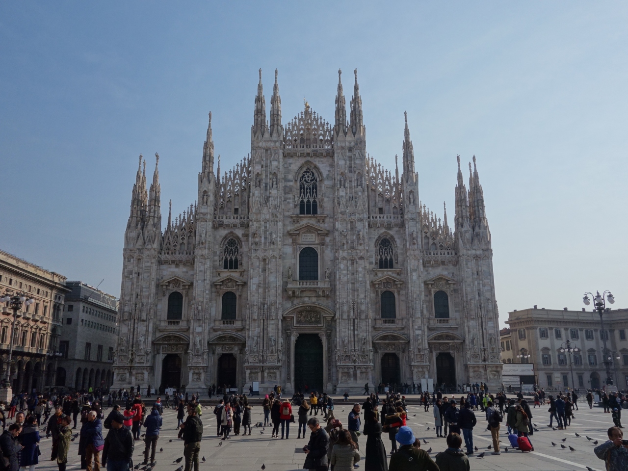 ミラノ大聖堂前の広場。ここからドゥオーモのファサードを鑑賞することになります。最初にここに来たときにはこのファサードの大きさと白さに圧倒されました。ミラノの富の象徴です。こんな建築を作ることができるのだ,と感動しました。そう,それほどの大きさです。人類の遺産です。