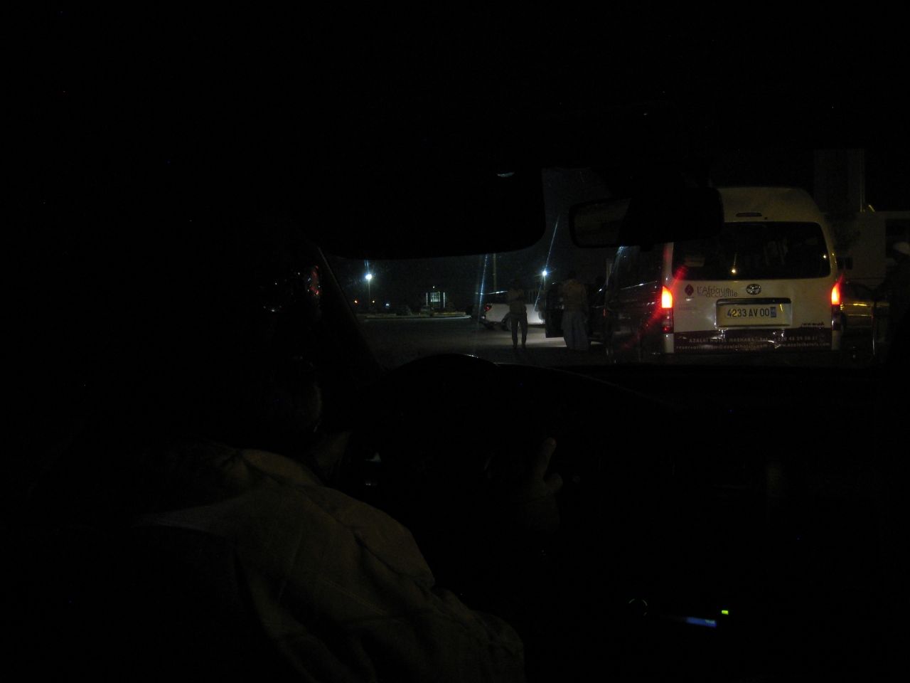 NKC国際空港とヌアクショットの街は、意外と距離があります。私は空港から街までは、親切な中国人に助けてもらって、その方の自動車に乗せてもらえました。逆は、タクシーを利用しました。料金の相場は15ユーロです。写真はタクシー内から撮った空港の写真です。