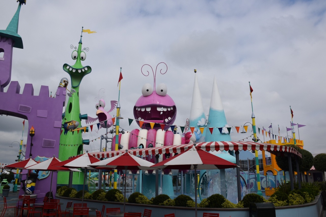 楽しそうな水遊びエリアがあります。遊びたかったが朝一は寒く、しかも裸足はダメだったので断念。小さなアスレチックエリアがあるので子供達は走り回ってました。グリーティングもミニオンだけでなく3姉妹やグルーもきてました。