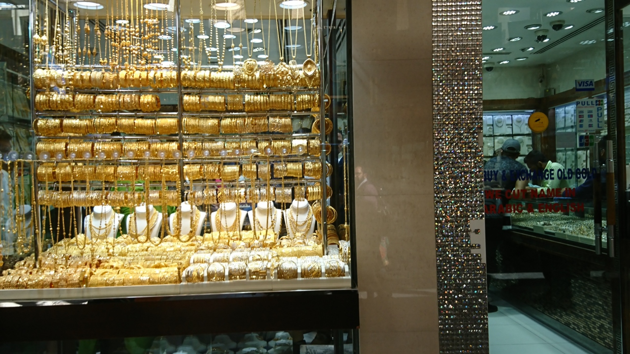 ドバイの旧市街はドバイクリークを隔てて二つに分かれているが、そのうちのディラ地区に位置するスークのひとつ。その名のとおり、金細工の店が通りにならび、競うように店に並び、きらびやかさにただただ驚かされる。金細工を買わない人でも楽しむことができる。
