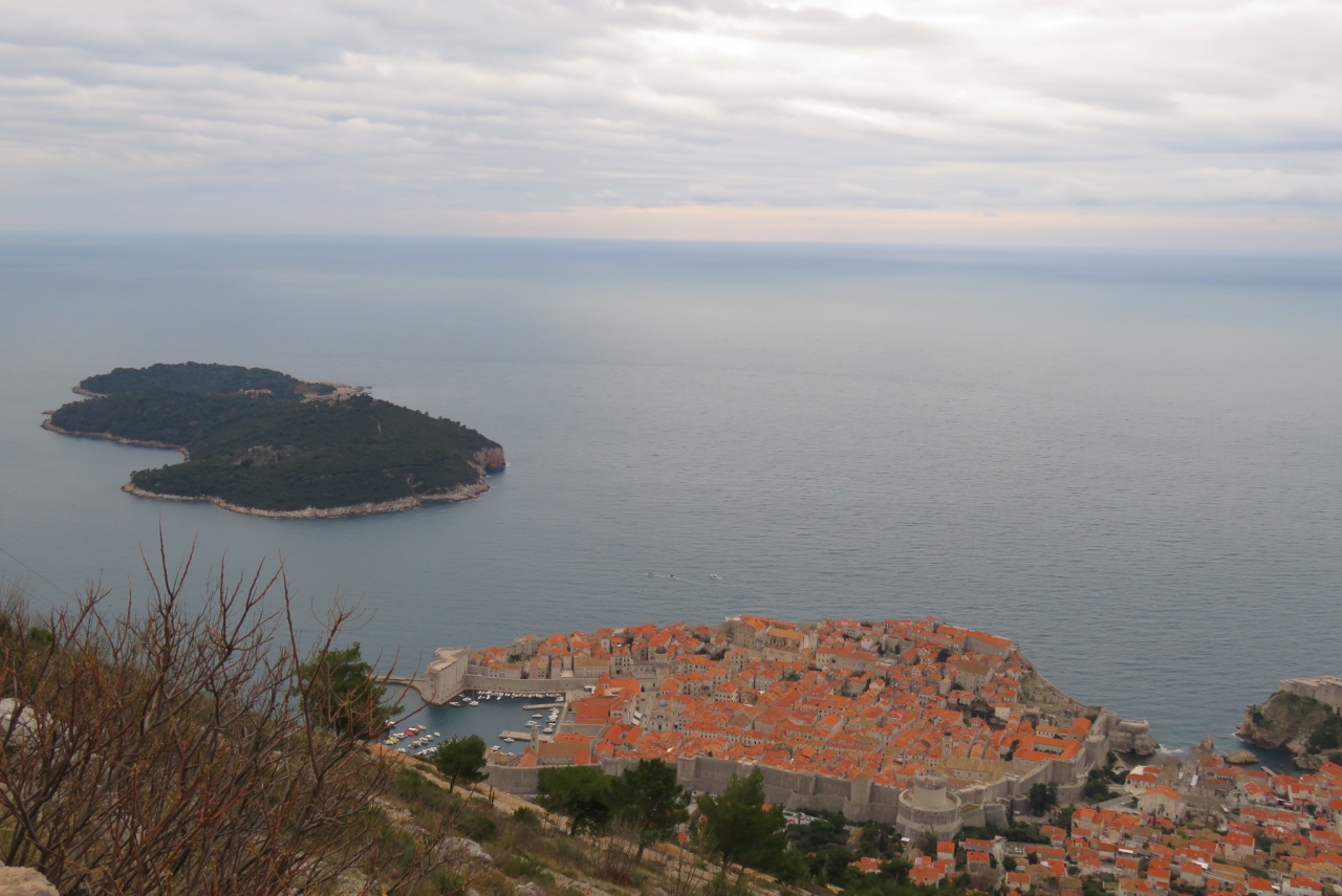 その近さはスルジ山から見るとよく分かりました。緑に覆われた小島です。旧港にボートツアーのデスクや定期船の時刻表のようなものがありましたが、冬季は動いてないのかもしれません。人の気配をまったく感じませんでした。