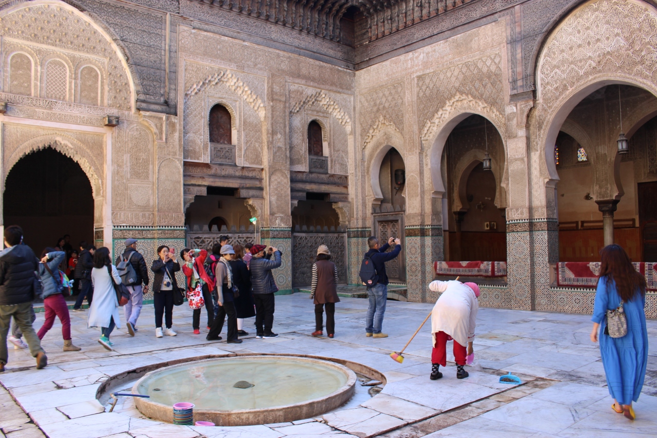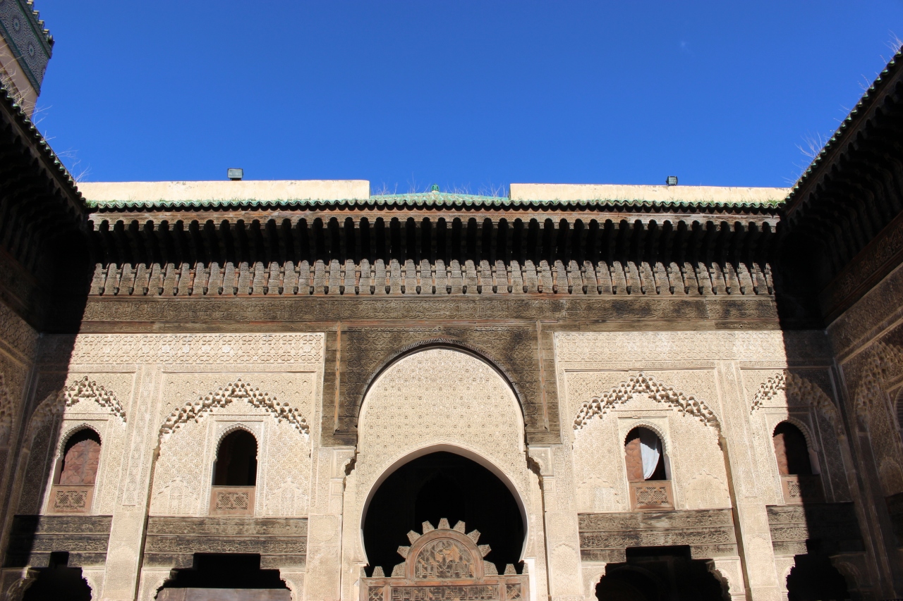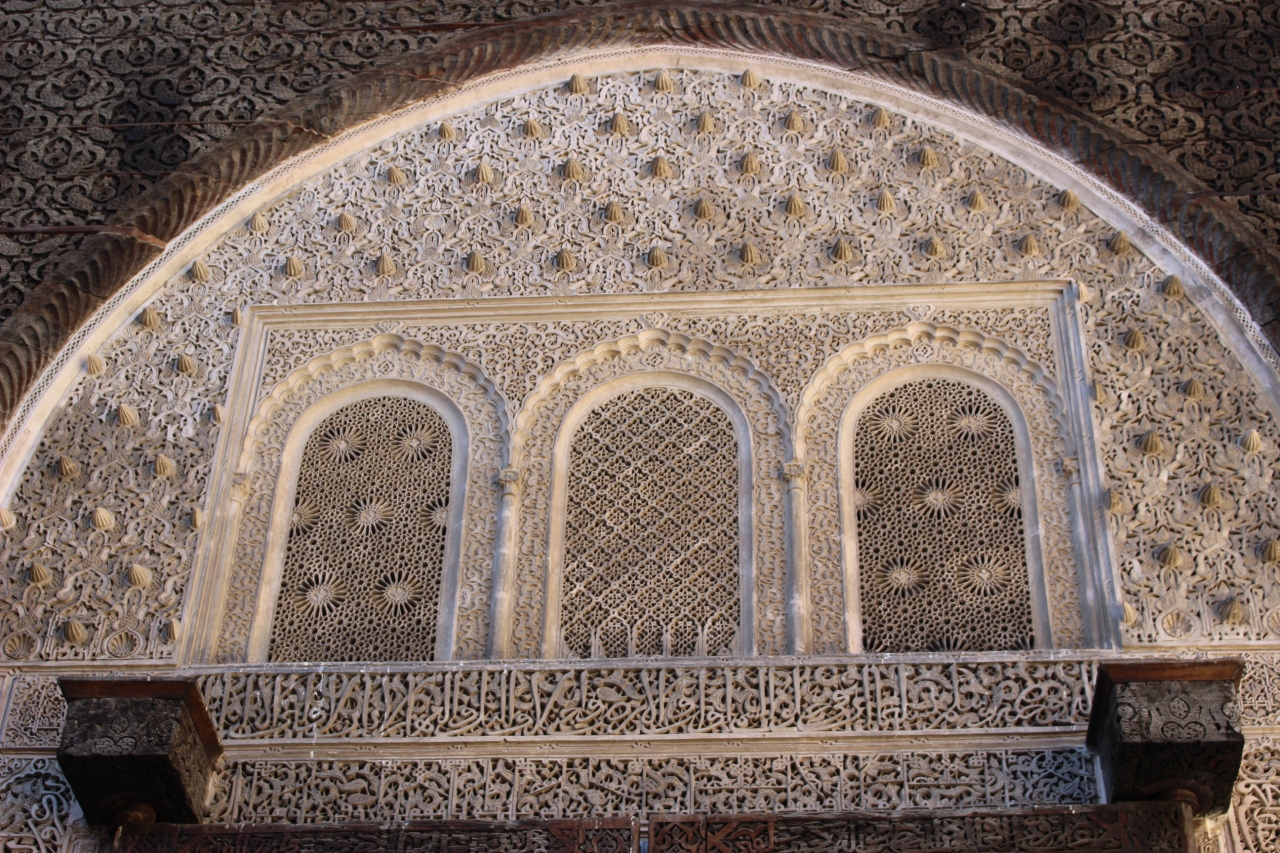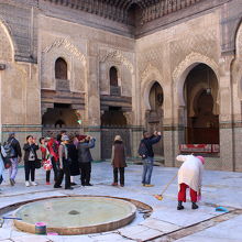 大理石を敷き詰めた中庭から見た壁にはさまざま、綿密で美しい文様が彫られています。