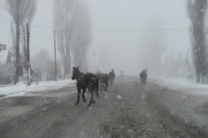 が、道路に放牧の馬や牛がいて、路面が凍結していたので滑って転んだ姿にちょっと癒されてしまった。(慌てて起き上がって群れまで走っていって、足がまた滑っておっとととーみたいな感じが笑えた!)