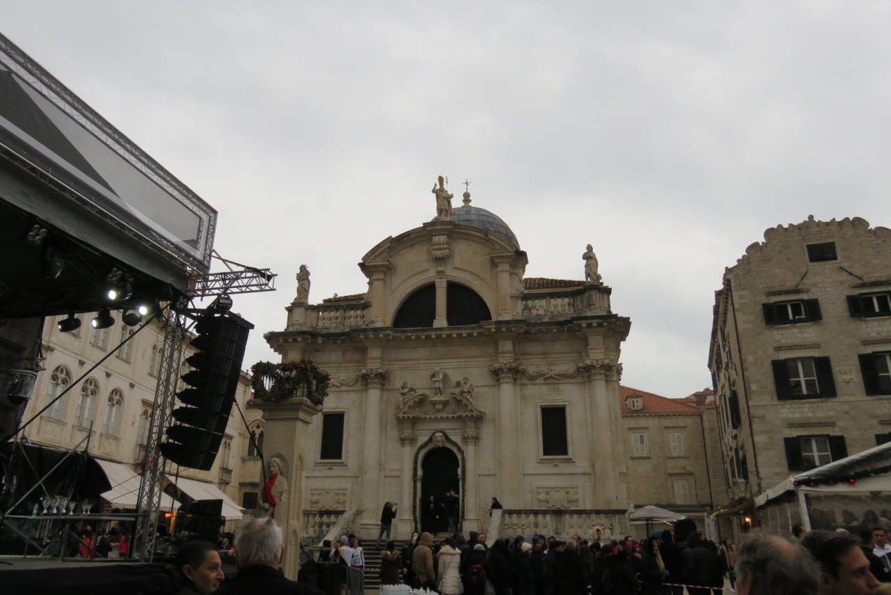 ルジャ広場、聖ヴラホ教会の前の大きな柱に騎士オーランドの像がありました。1月1日、ルジャ広場に大きなステージが設置されていたので、オーランドの像はちょっと人ごみにまぎれてしまっていた印象です。新年を迎えるからか赤いスカーフみたいなものをまとっていました。