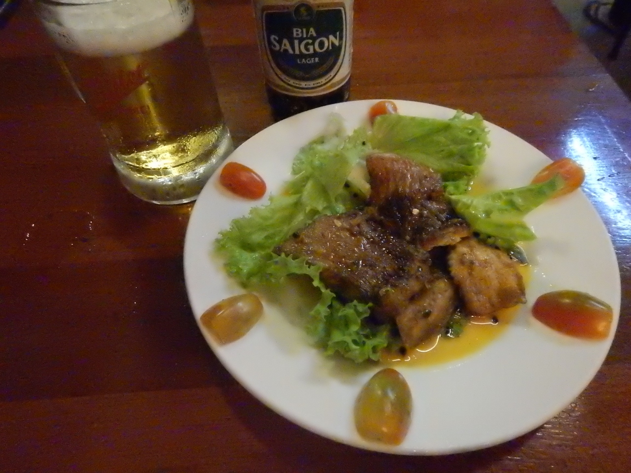 このの魚料理を割と気に入っている。昨年ホーチミンに来た時は寄らなかったので2年ぶりtなった。今回は魚料理はフライドフィッシュのパッションフルーツ添え(6万ドン)というヤツとサイゴンビール(1万5千ドン×2)。魚料理は好きなので美味しく食べられた。