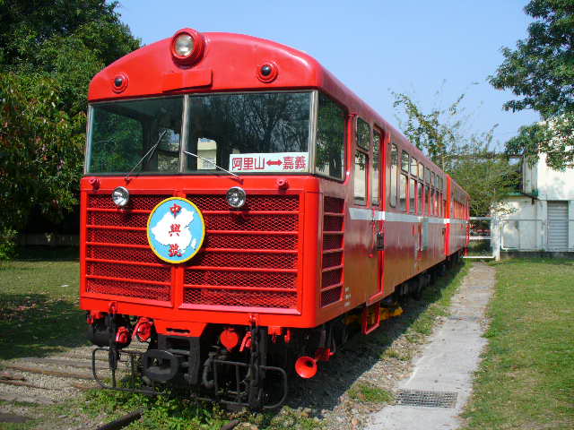 タクシーですと嘉義駅から5分くらい。公園のようになっていて立ち入り禁止区域以外は自由に入れます。ウエヂングドレスをきた女性が写真撮影をされていました。さまざまな小型の列車が展示されています。公園の向こうは阿里山鉄道の線路だと思います。