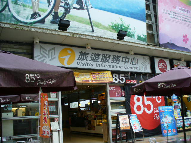 台中市や台北からもバスがここに到着しますが、我々は集集線の水里駅から南投バスで来ました。建物1階には観光案内所(日本語?)や貸し自転車のカウンター、またコーヒースタンドなどがあります。2階にはモスバーガーがありテーブルでゆっくりできます。