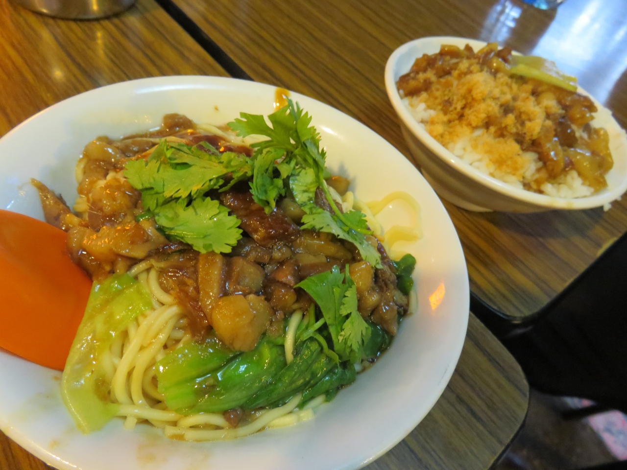 龍山寺の近くの夜市入ってすぐの角にあるお店で、テーブルも多く入りやすい雰囲気です。店内の注文用紙に食べたいものを記入して店員さんに渡すシステム。ここのルーロー飯はアジア特有のスパイスが入っていないようでとても食べやすい味で美味しかったです。麺は何も言わずに注文するとパクチーどっさりなので苦手な方は抜いてもらうようにお願いしたほうがいいかと思います。