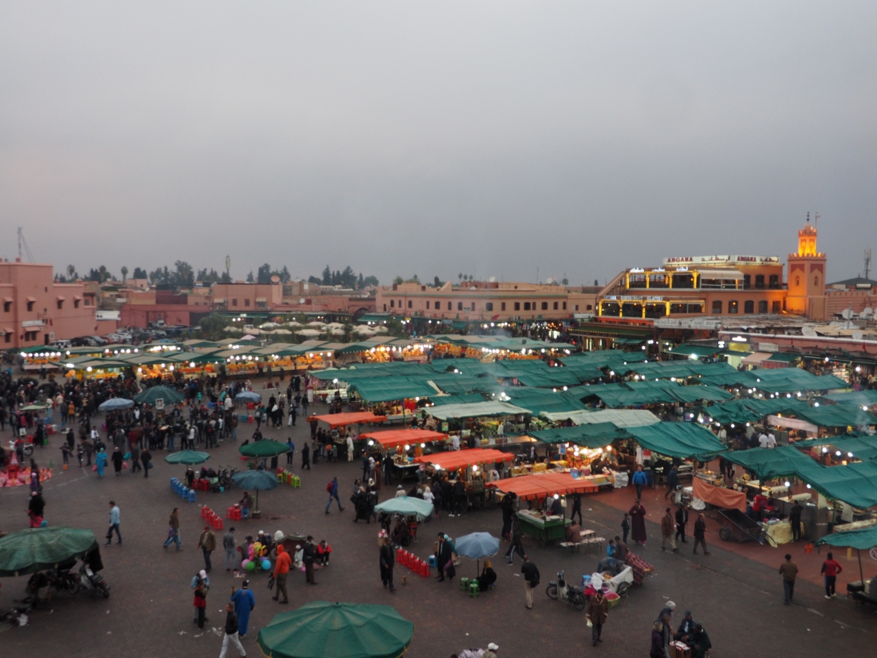 マラケッシュの観光の起点となる広場は夕方から一番賑わいます