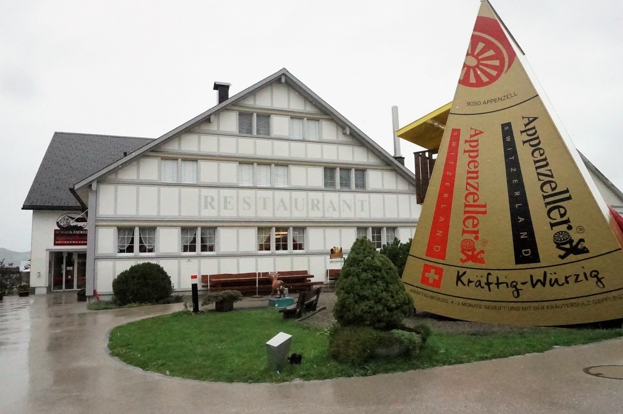 ザンクト・ガレンから180番のバスで約15分のシュタイン郵便局(Stein AR, Post)で下車、三角形のチーズのモニュメントが目印です。