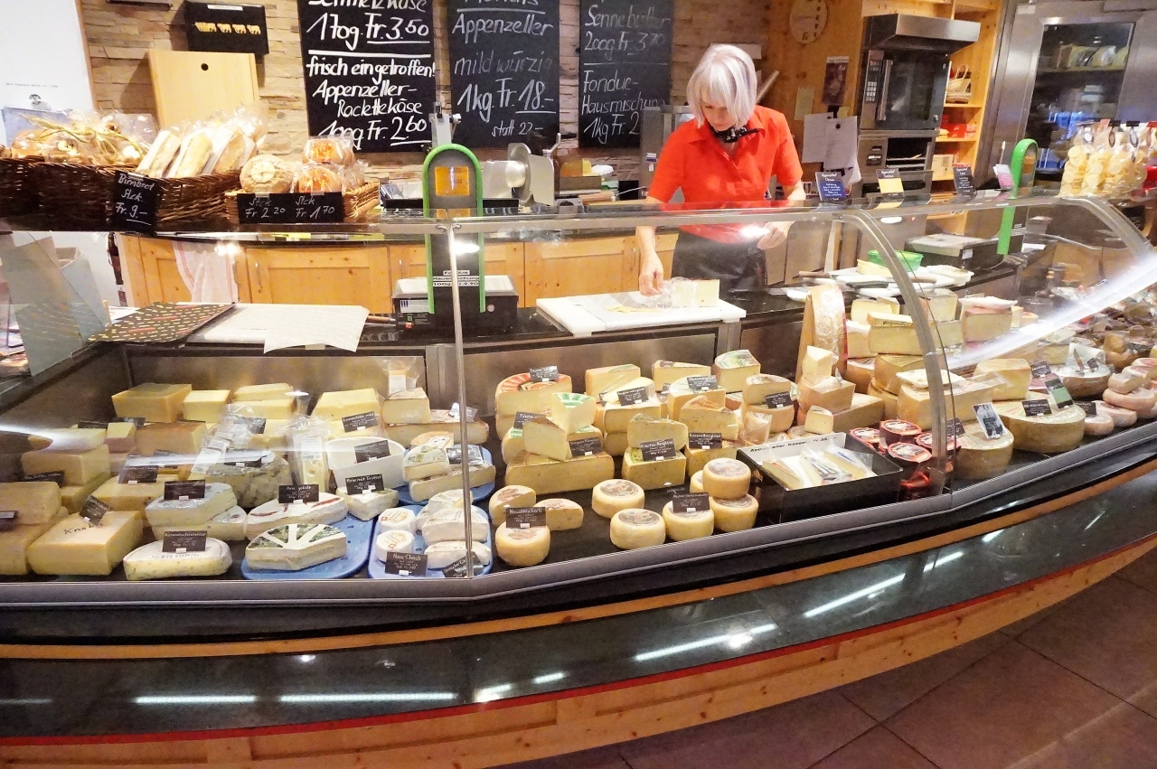 また、レストラン、売店が併設され、ショーケースにはたくさんのチーズが並んでいました。