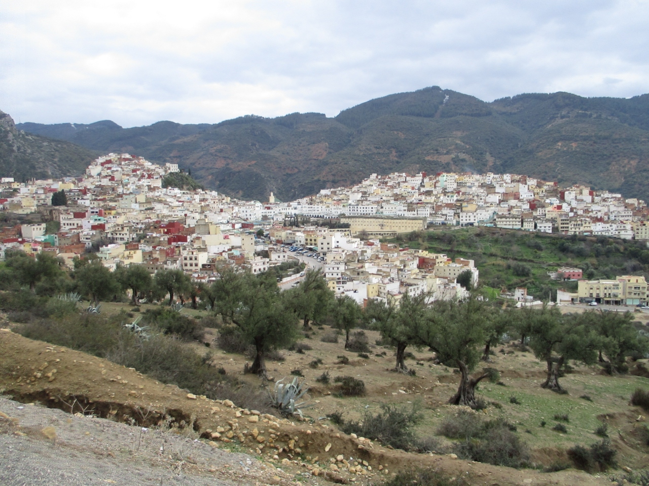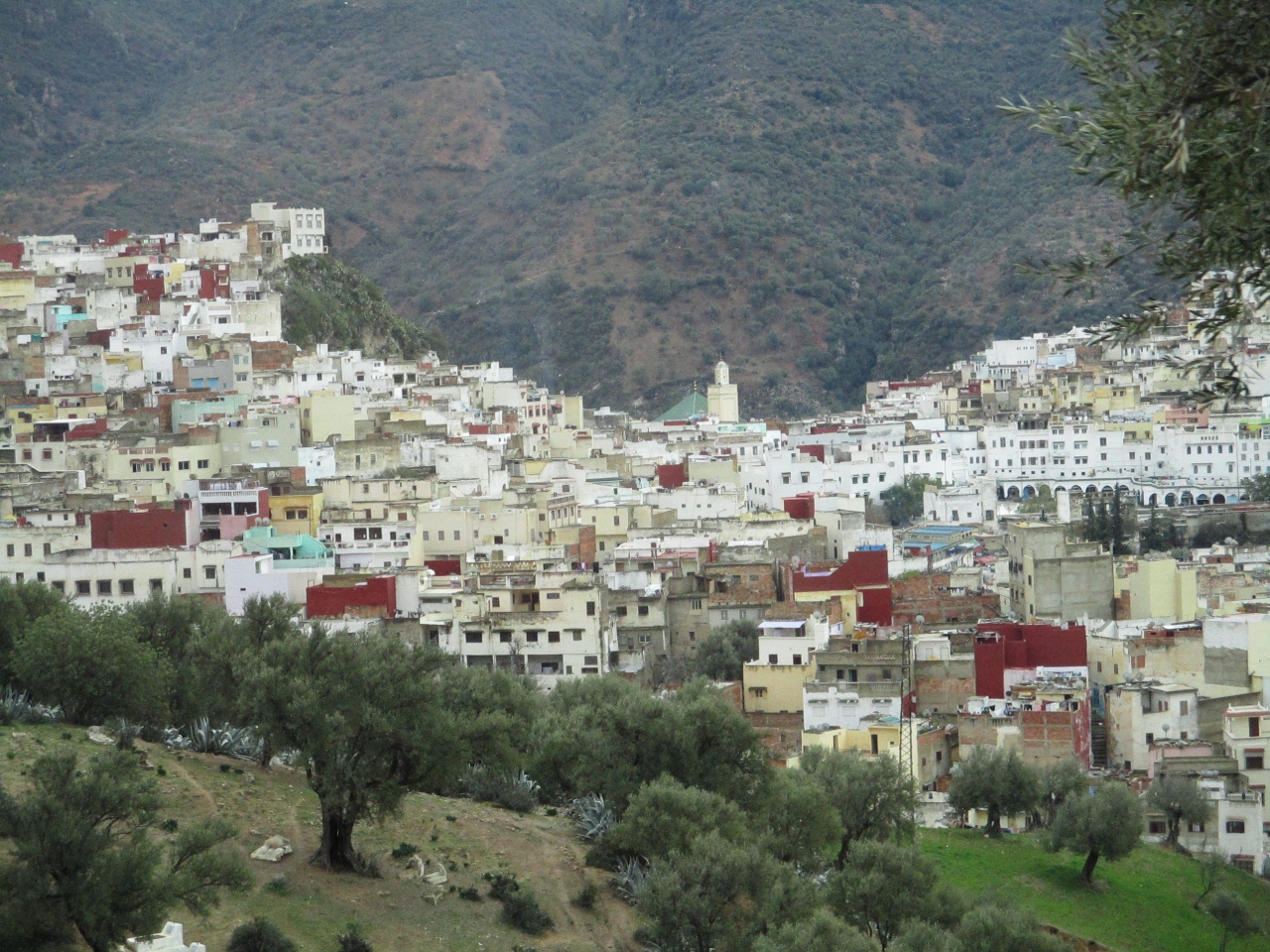北アフリカに位置するタジン鍋やクスクス発祥の地域にあるモロッコを訪問した時に、モロッコの首都ラバトの東へ約100km離れたところにあるヴォルビリスの古代遺跡へ行く途中に「聖者の町」ムーレイ・イドリスの町も通りました。