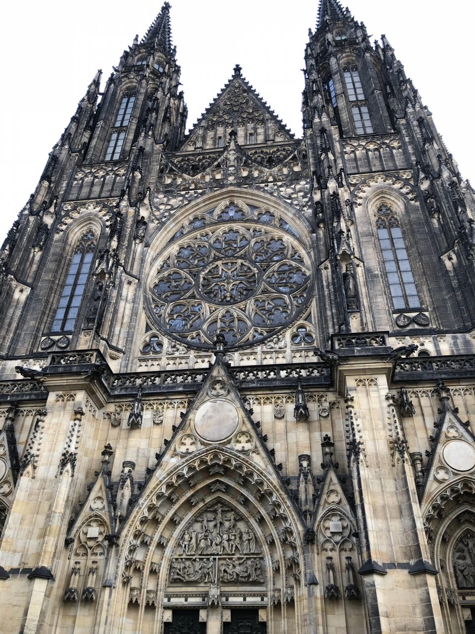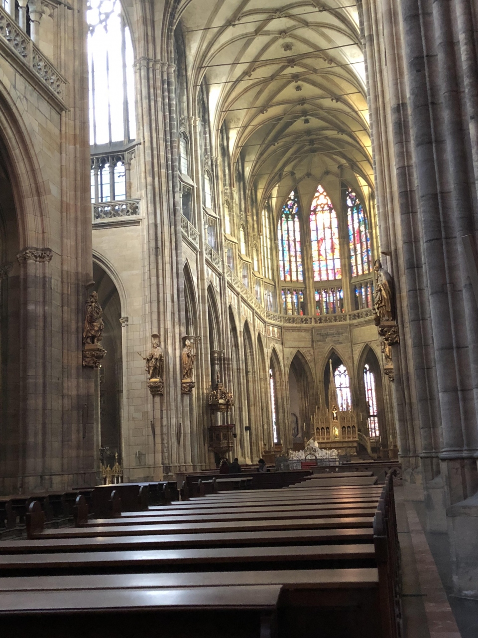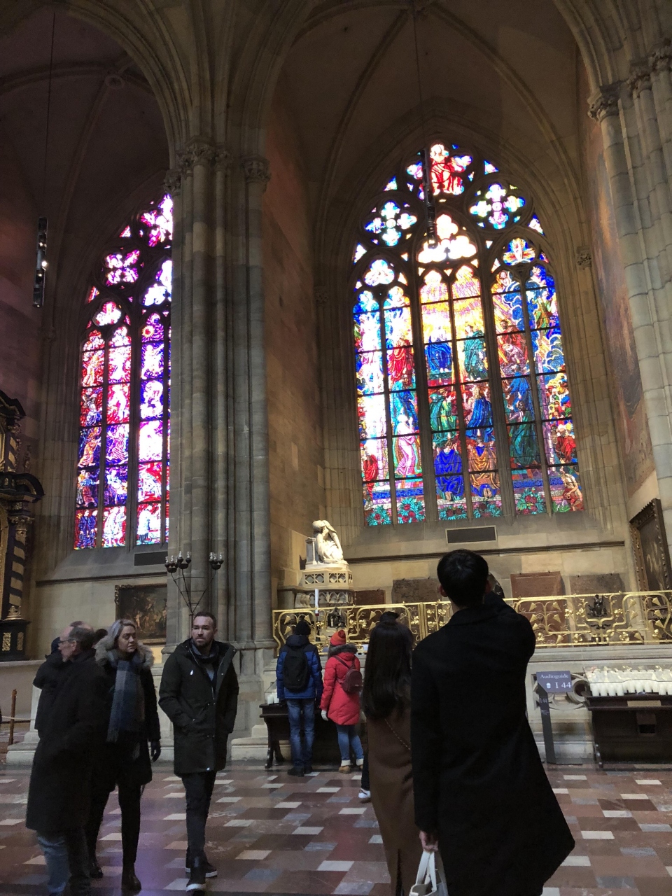 プラハ城第3の中庭にあって尖塔がとても高いのでプラハ市のどこからでも見えるステンドグラスが美しい大聖堂