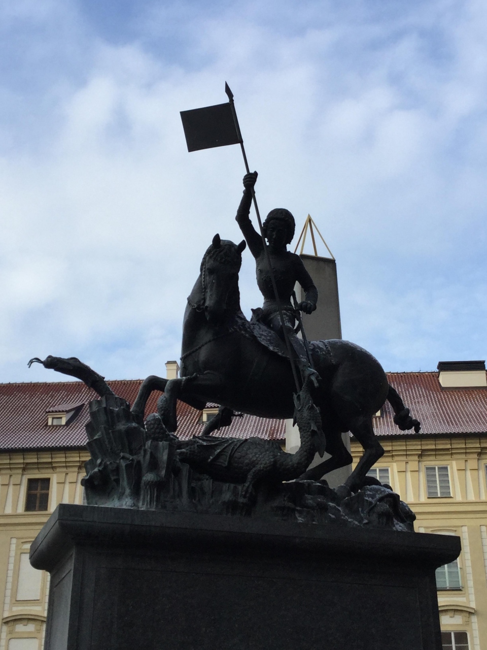 守護聖人でドラゴン退治の伝説があり、この像も足元に槍を突かれたドラゴンがいます。