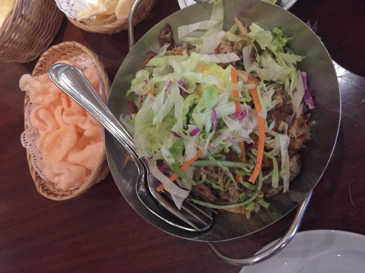食べ物は、アイランドキッチンで調理されるサテが有名。肉の種類、味付けは、お好みに合わせて選択可能です。鶏肉のサテをピーナッツソースでいただきました。絶妙な火力の炭火で焼かれており、とてもやわらかい食感、甘辛い味付けでとても美味しかったです。