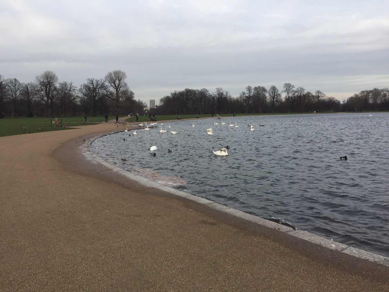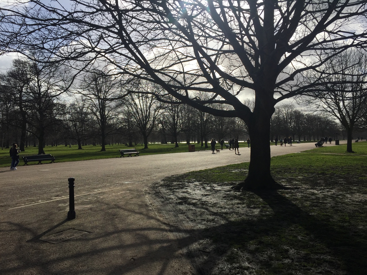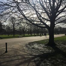 三月のハイドパークはまだ緑も少なく殺風景な感じがあります。