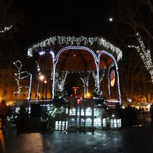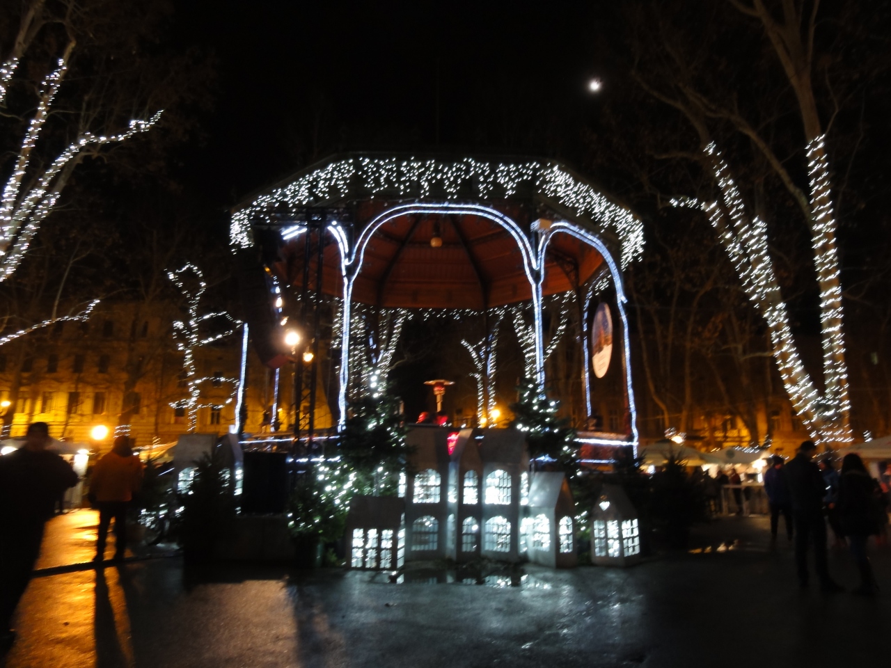 夜に訪れたら広場の中央にステージがあり、屋台がたくさん出ていてザグレブで一番賑やかなクリスマスマーケットに見えました。雑貨の露店も少しだけあり、ハートのペンダントトップを購入したら、その場で紐も付けてくれました。