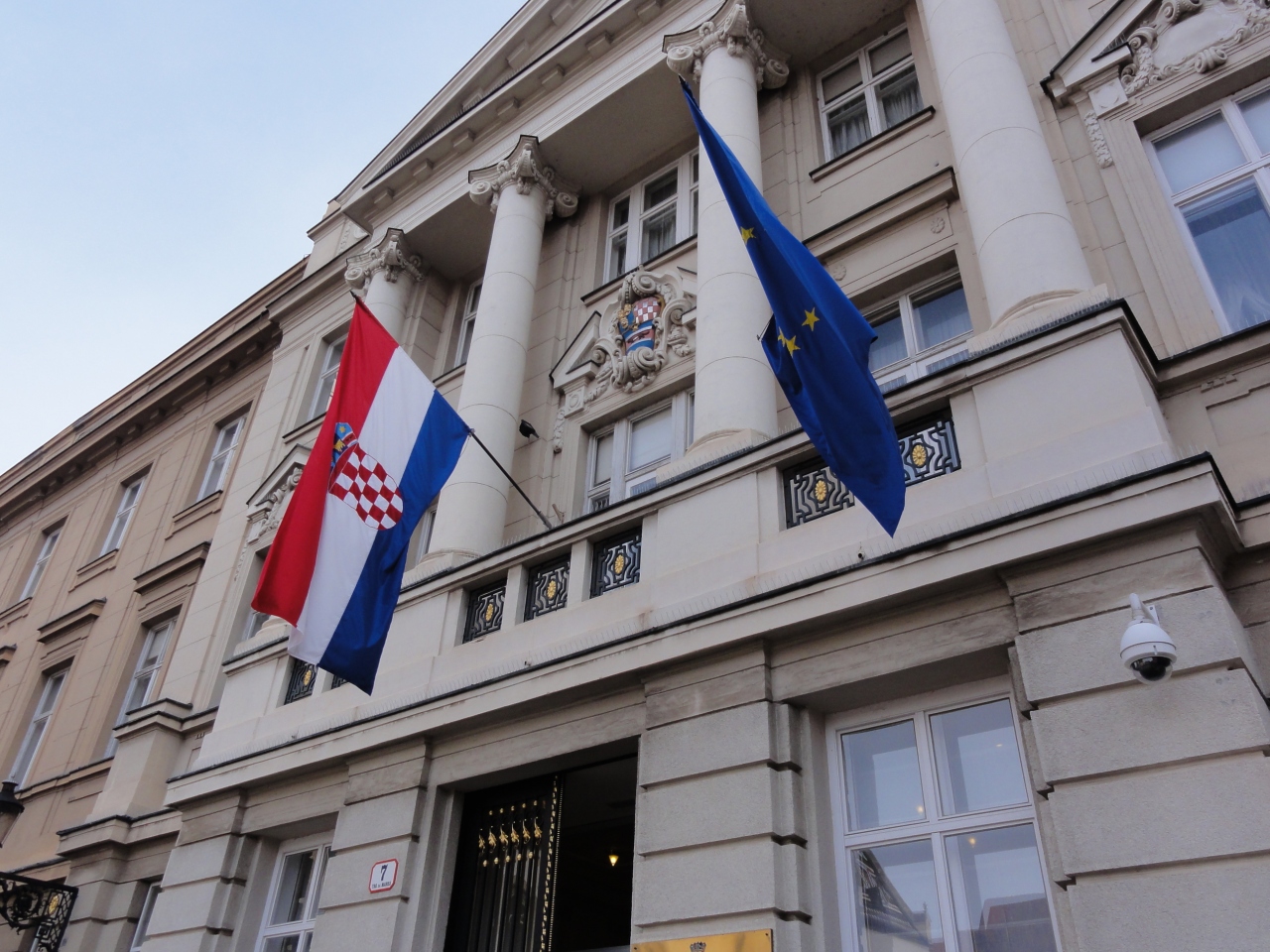 スヴェティ・マルコ広場に面して建ち、聖マルコ教会を中心に左が首相官邸、右が国会議事堂です。クロアチアの国旗とEUの旗が掲げられていました。国会議事堂ときくとつい大きな建物を想像してしまいますが、こじんまりしていて驚きました。