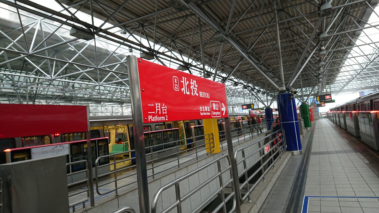 北投駅と新北投駅の間はかわいらしいイラストが描かれた電車に乗って一駅です。