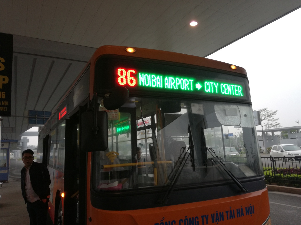 朝6時20分すぎには、市内中心部に向かう86番バスが1階の到着口出て(一本道を渡った)先に止まっています。運賃は30000ドン(約150円)で、約30~40分で旧市街地区に着きます。