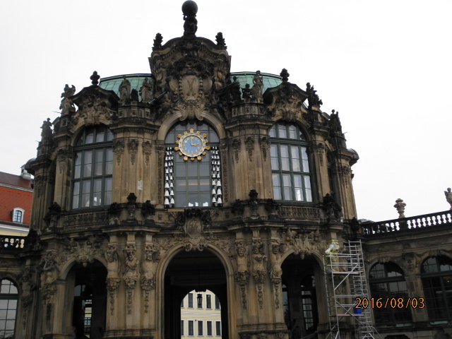 ドイツバロック建築のこの建物は、現在、中庭を囲むように、ラファエロの「サンシストの聖母」を所蔵することで有名なアルテマイスター絵画館と磁器収集室、武器室、数学・物理学室があります。マイセン焼きカリヨンがついた南門や、北側にはニンフの浴場と呼ばれる噴水もあり、とても見どころの多い宮殿といえます。
