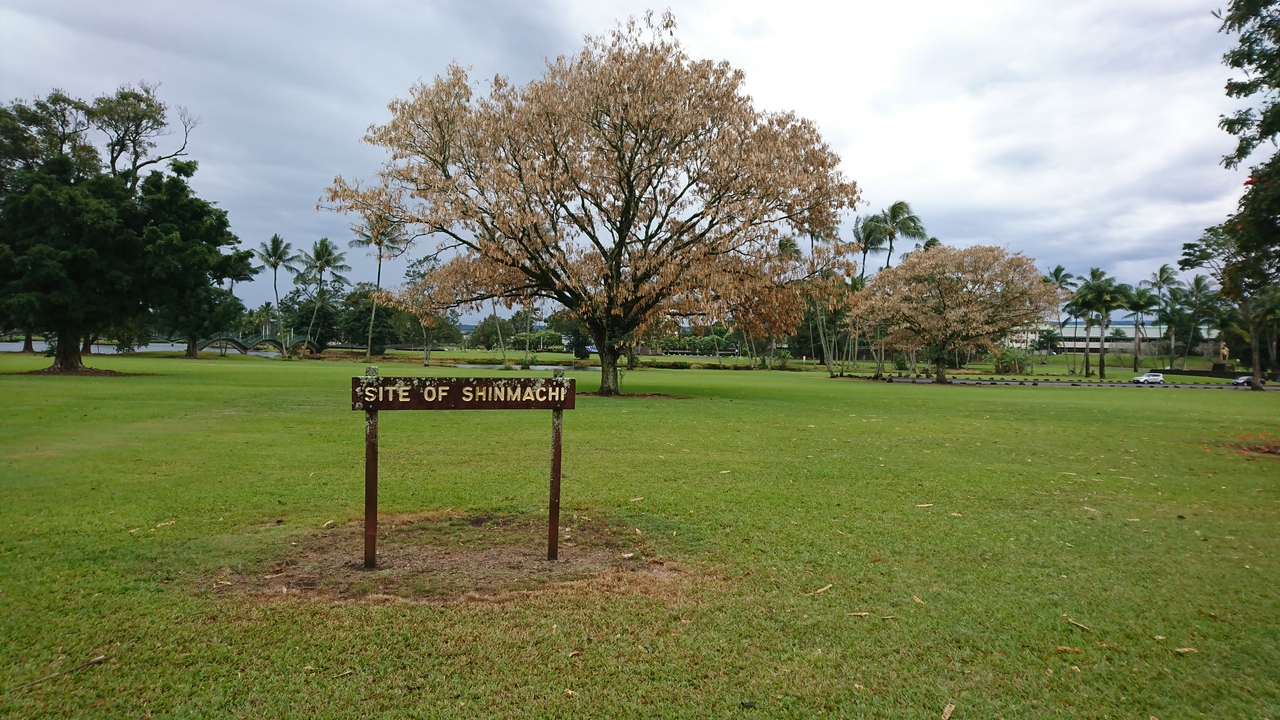 ハワイ島に2体あるうちのヒロの公園にあるカメハメハ大王像です。カパアウの大王像ほ黄色ぽいのですが、こちらは金色で大きくてぱっと見た感じハこちらの方が豪華な感じがします。誰もいない公園だったのですが、途中からツアーの人がきて写真を撮っていました。