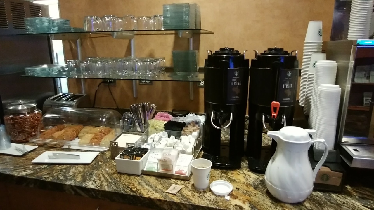 スナック、クッキー、パン、サラダ、スープなども十分にあり、カウンターではピザのオーダーもできました。