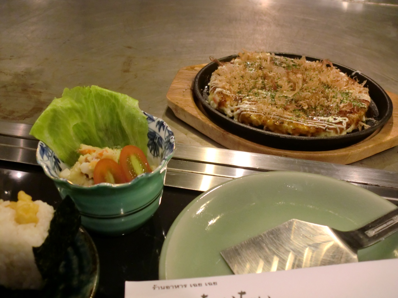 日本人街の一つであるスクムビットソイ33/1に開いて5~6年になるが、お好み焼きの店として定着した感がある。夜は鉄板焼きを中心の居酒屋だが、昼はランチでお好み焼き、焼きそばが食べられる。ランチとしては高め。