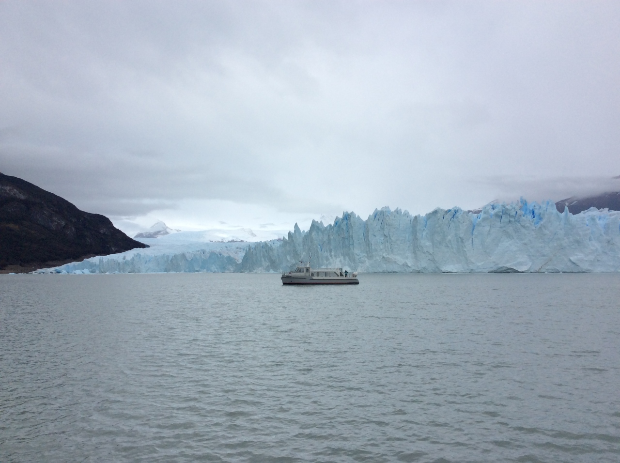 氷河クルーズは、中型の船で1時間くらい氷河の近くをぐるぐる回りました。旋回してくれるので、船のどこに居ても氷河は見えます。間近に見る氷河は絶景です。