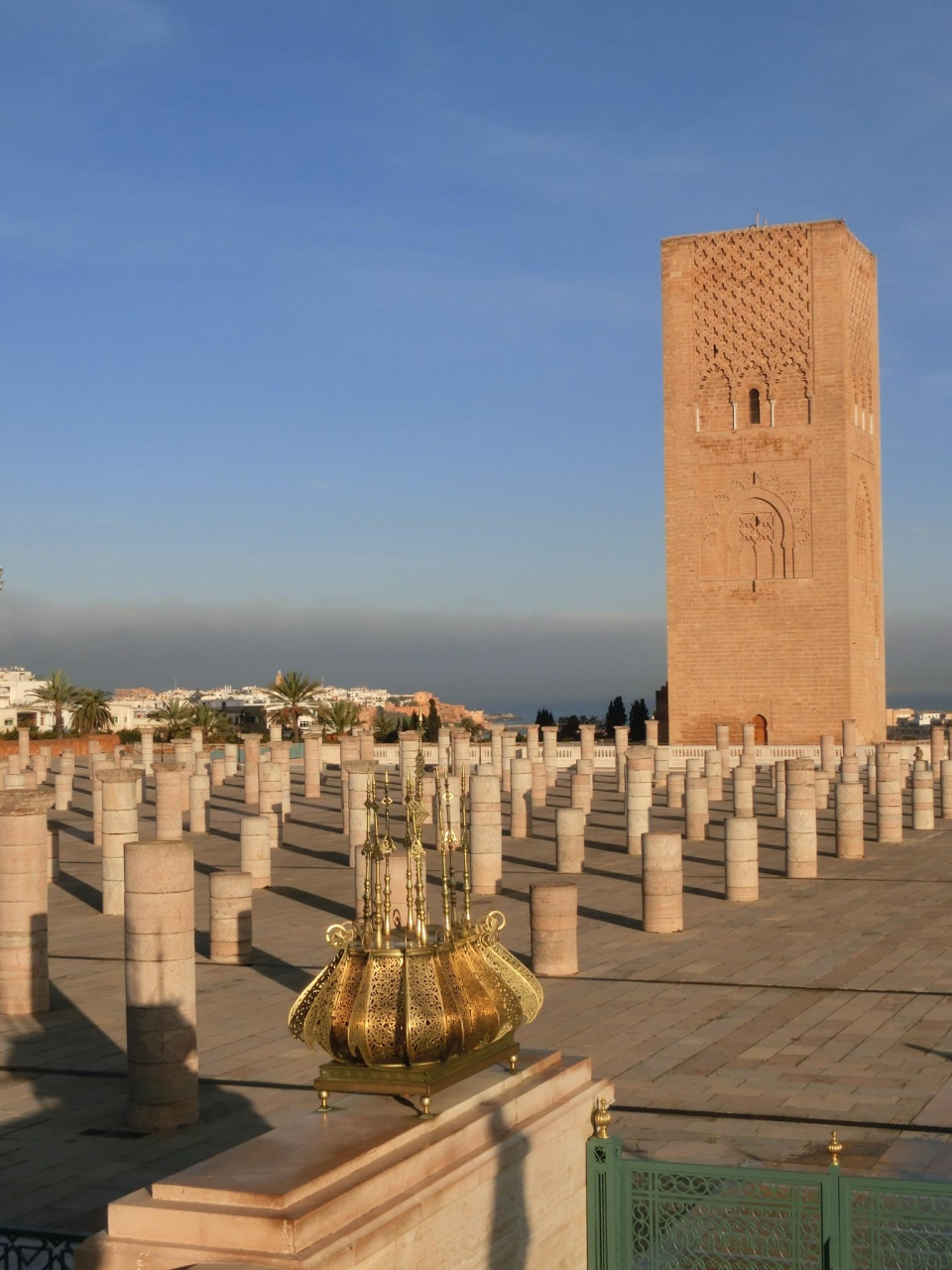 広い敷地に綺麗に並んだモスクの柱とその先に見える44メートルの塔がとても綺麗で、不思議な雰囲気を出している様に思えました。