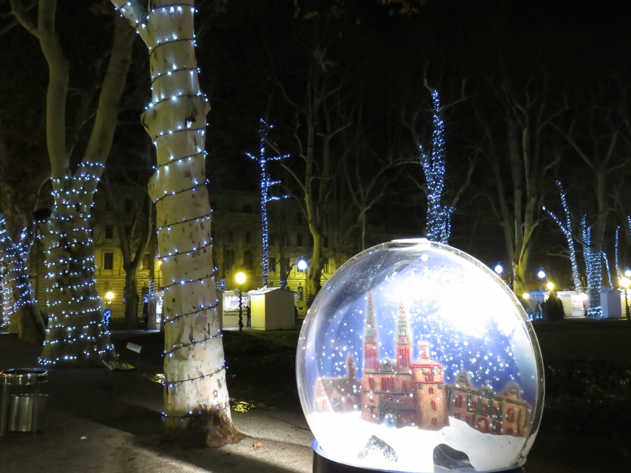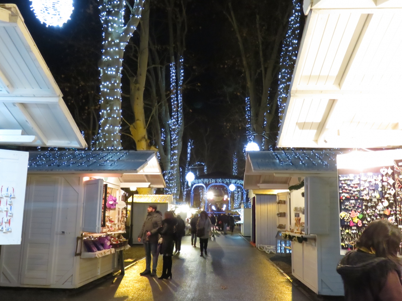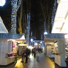 夜に訪れたらクリスマスマーケットが開かれていてとてもきれいでした。中央にはステージがあり、ドリンクの屋台でホットワインを飲んでいる人が沢山いました。可愛い雑貨の屋台もあり、ハートのペンダントが気になったので翌日の昼間に買いに行きました。お値段も手頃でした。