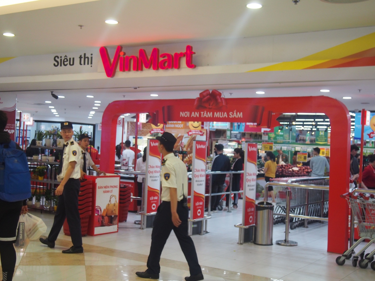 大型のオフィースビルになっており、低層階にはショッピングモールになっています。地下1階にスーパーマーケットがあり買い物をしました。高級感のあるスーパーマーケットで品揃え、ディスプレイなどは高級感もありました。水、ジュース、コーラ類も豊富で、ビールも各種ありました。大きな荷物は入口手前で預けるようになります。支払いはベトナムドンだけのようで、クレジットカードで支払いました。