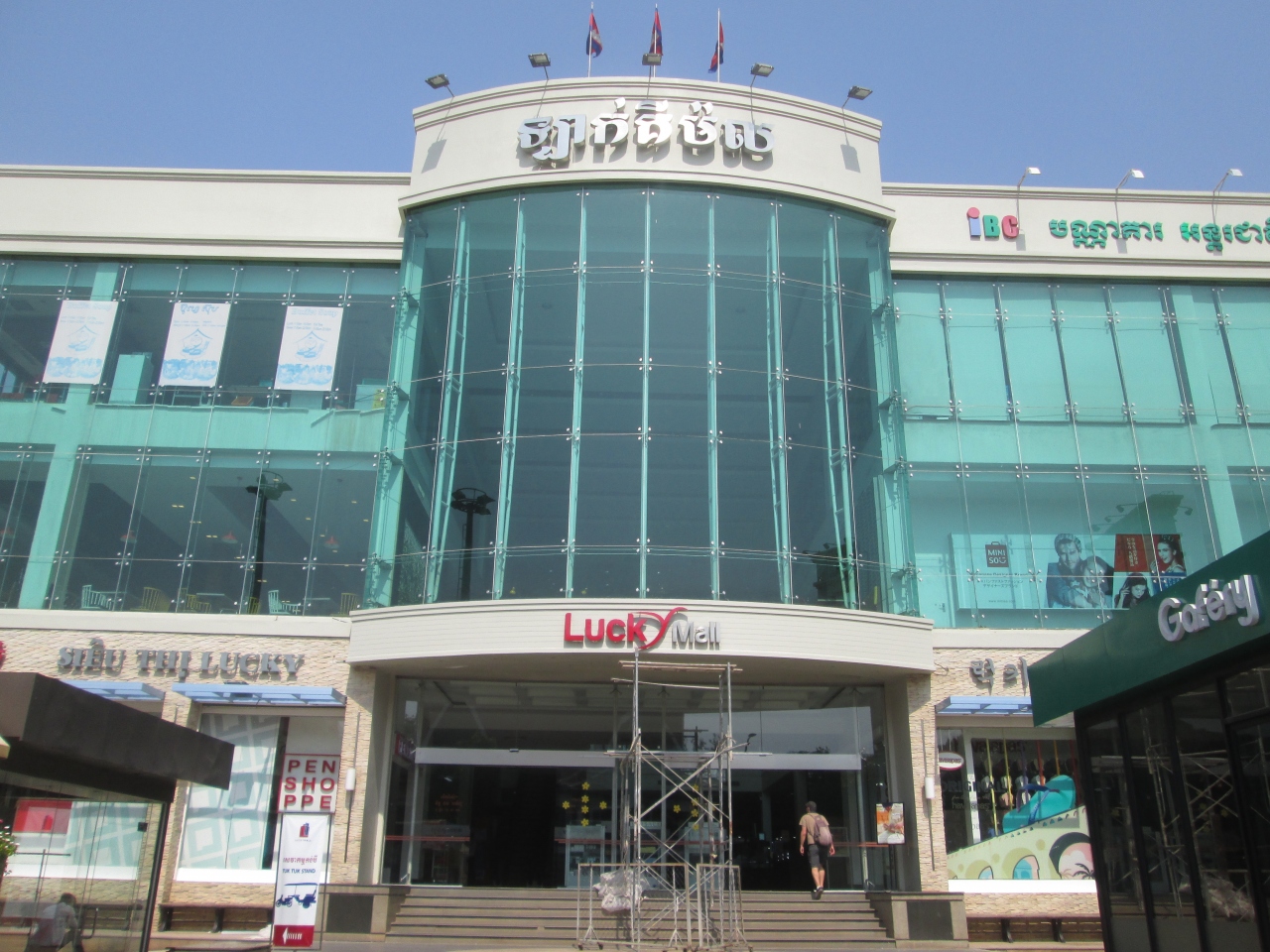 国道6号線付近にある大きいモールでした。地上3階建てのモールで、1階はスーパーマーケットとベーカリーショップ、2階にはファストフード店、コスメブランド、ディスカウントショップ、3階は家電製品店などが入っていました。シェムリアップで見かけたモールでは最大の規模でした。