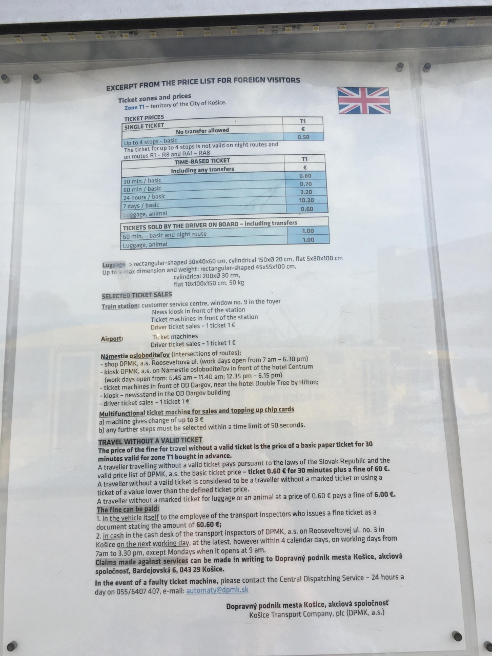 コシツェのトラムは駅前ロータリーをはじめ、旧市街地やコシツェ市近郊を回る便利な乗り物。駅と旧市街地のみを回るなら徒歩でもなんとか大丈夫ですが、それ以外の場所に行くなら路面電車=トラム利用価値は大。東欧らしく車体デザインがカラフルでとても素敵で、また遠くからでも見逃さない効果もあります。