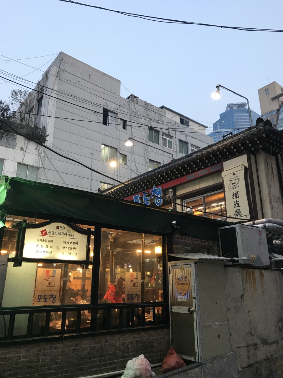 夜6時ごろ伺いました。ソミョンの繁華街の中にあります。場所は少し分かりにくいかもしれません。大通りから中に入ります。