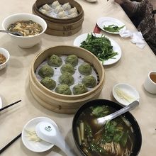 普通の小籠包とウーロン茶の小籠包、酸辣湯、空芯菜と牛肉出汁の麺などをいただきました。小籠包は店先で次々と作っているだけに、出来立てアツアツで最高です。大好きな酸辣湯は辛さが足りなくて残念。注文時に調節できるのかしら?