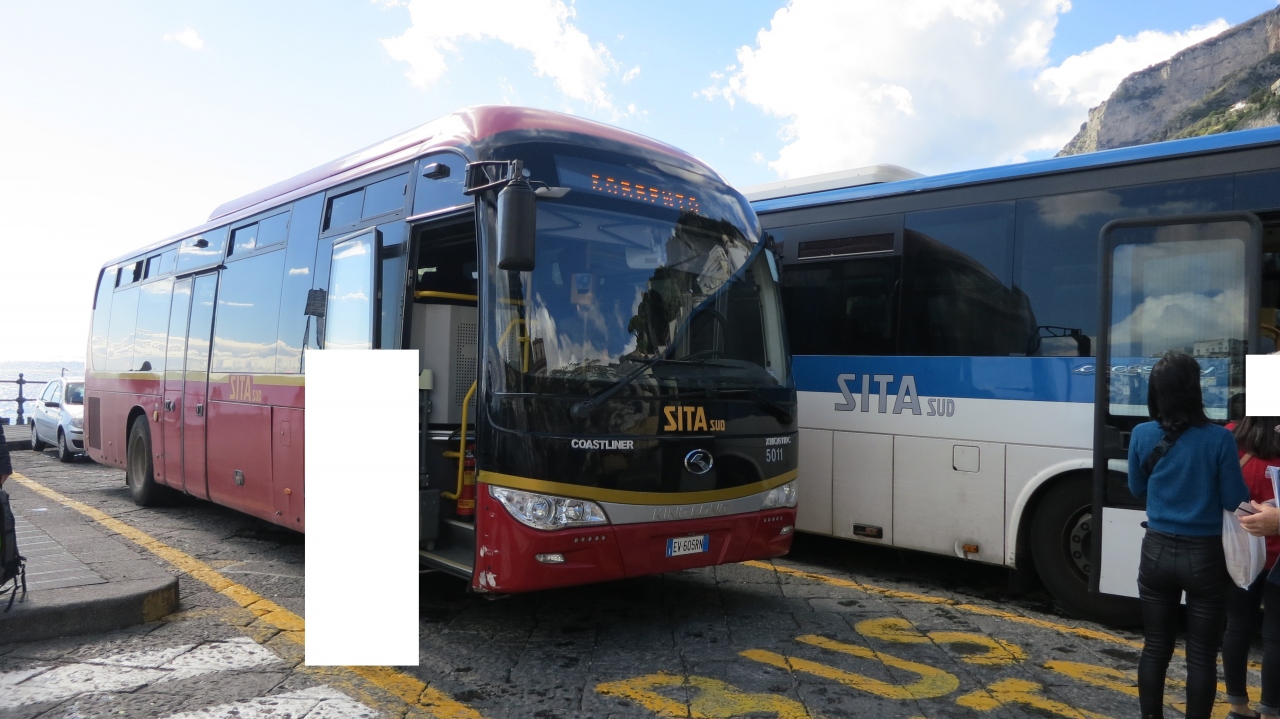 アマルフィの海岸の前にあるバス停から毎日バスを利用しました。チケットはすぐ近くの売店で購入しました。時期が良かったのか満員でバスに乗れないということもなく思っていたより時間も正確でとても便利でした。ナポリからアマルフィへの移動もバスを利用しました。快適でした。ナポリはフェリーターミナルのあるPiazza Immacolatellaのすぐ横のバスターミナルから乗りました。チケットもそこの売店で購入しました。