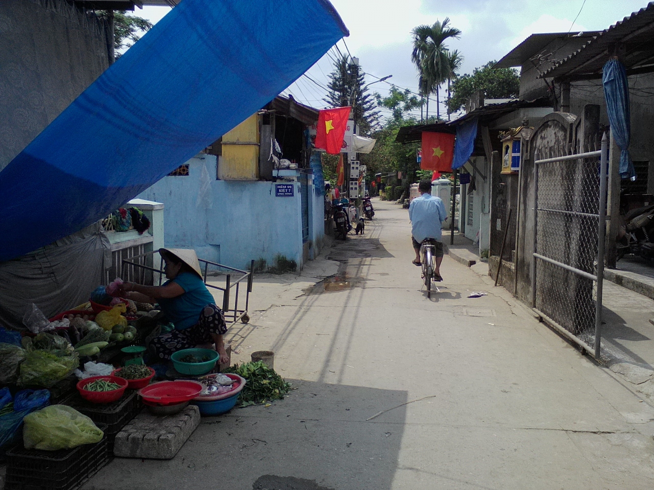 橋を渡り最初の三差路を左折すれば島の繁華街です(と言ってもかなりのんびりしていますが…)。コムヘンを出す屋台や食堂が並んでいますが昼頃に行ったせいか多くの店がすでに閉まっていました。といっても開いている店はありますのでご心配なく。けど朝に行ったほうが賑やかかもしれません。昼飯に「HOA DONG」というレストランでコムヘンとブンヘンを一杯づつ食べました(各1万ドン)。