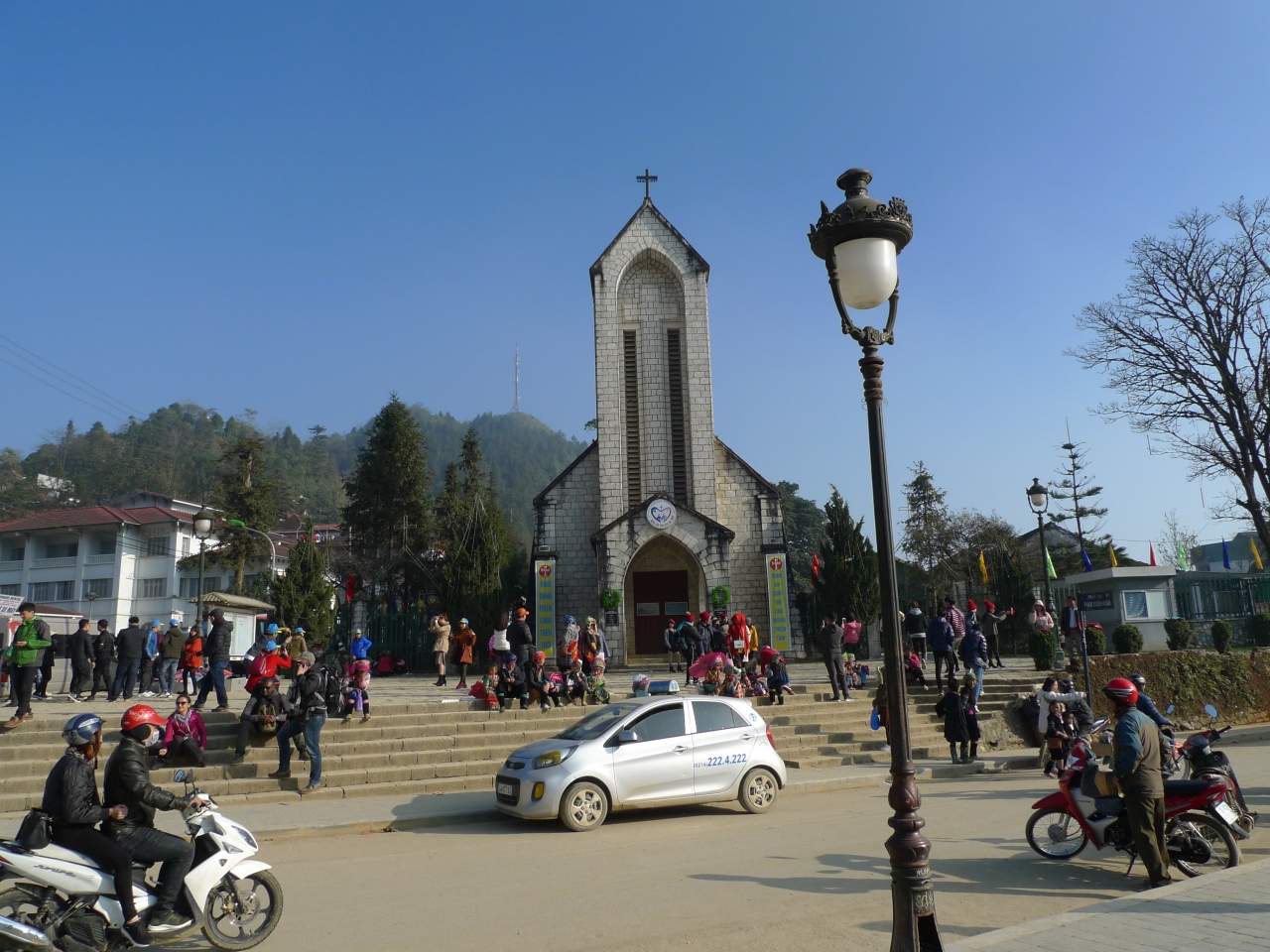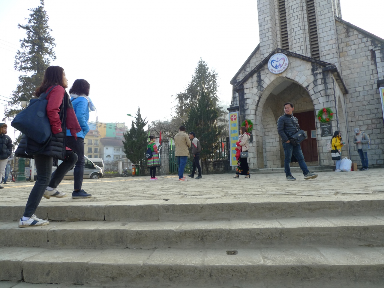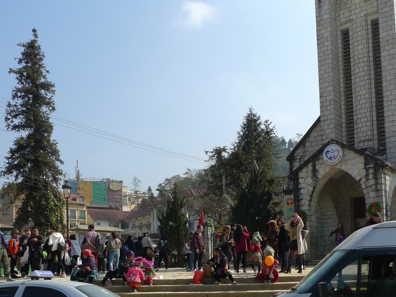 サパ教会の前には何がある訳でもないが、いつも人が集まっている。