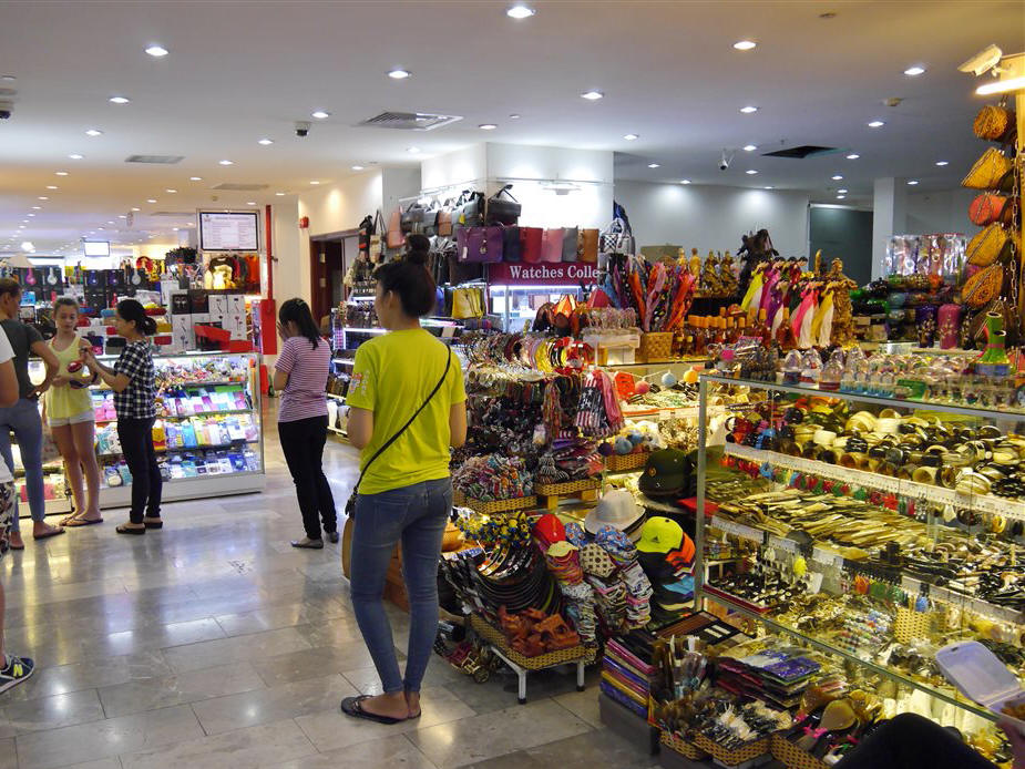 ラッキープラザの1階は土産物とコピーを売る店が並んている。
