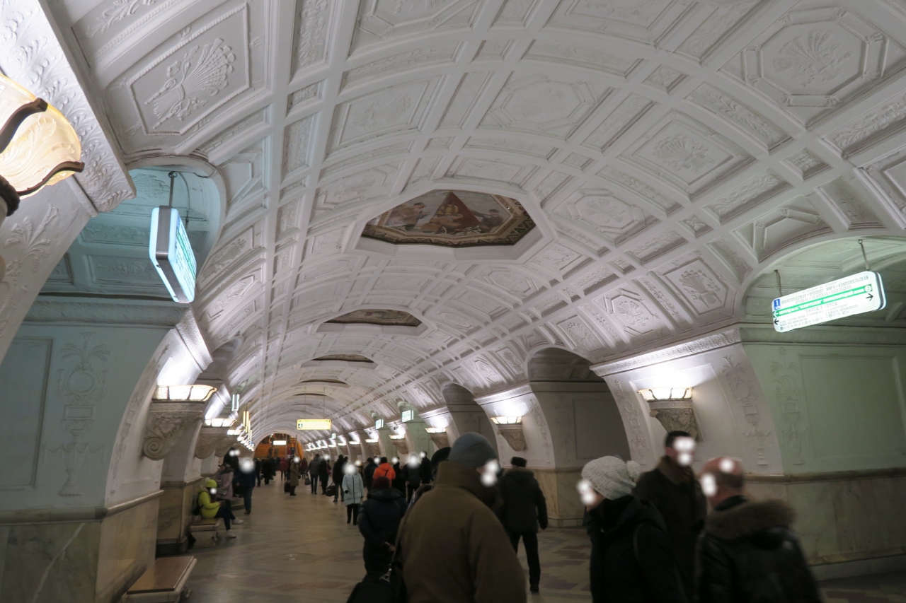 シェレメーチエヴォ国際空港からモスクワ市内の赤の広場へ行く際に利用したメトロの駅。 空港からはアエロエクスプレスでベラルーシ駅までで、そこからこのべラルースカヤ駅でメトロに載り赤の広場まで行った。