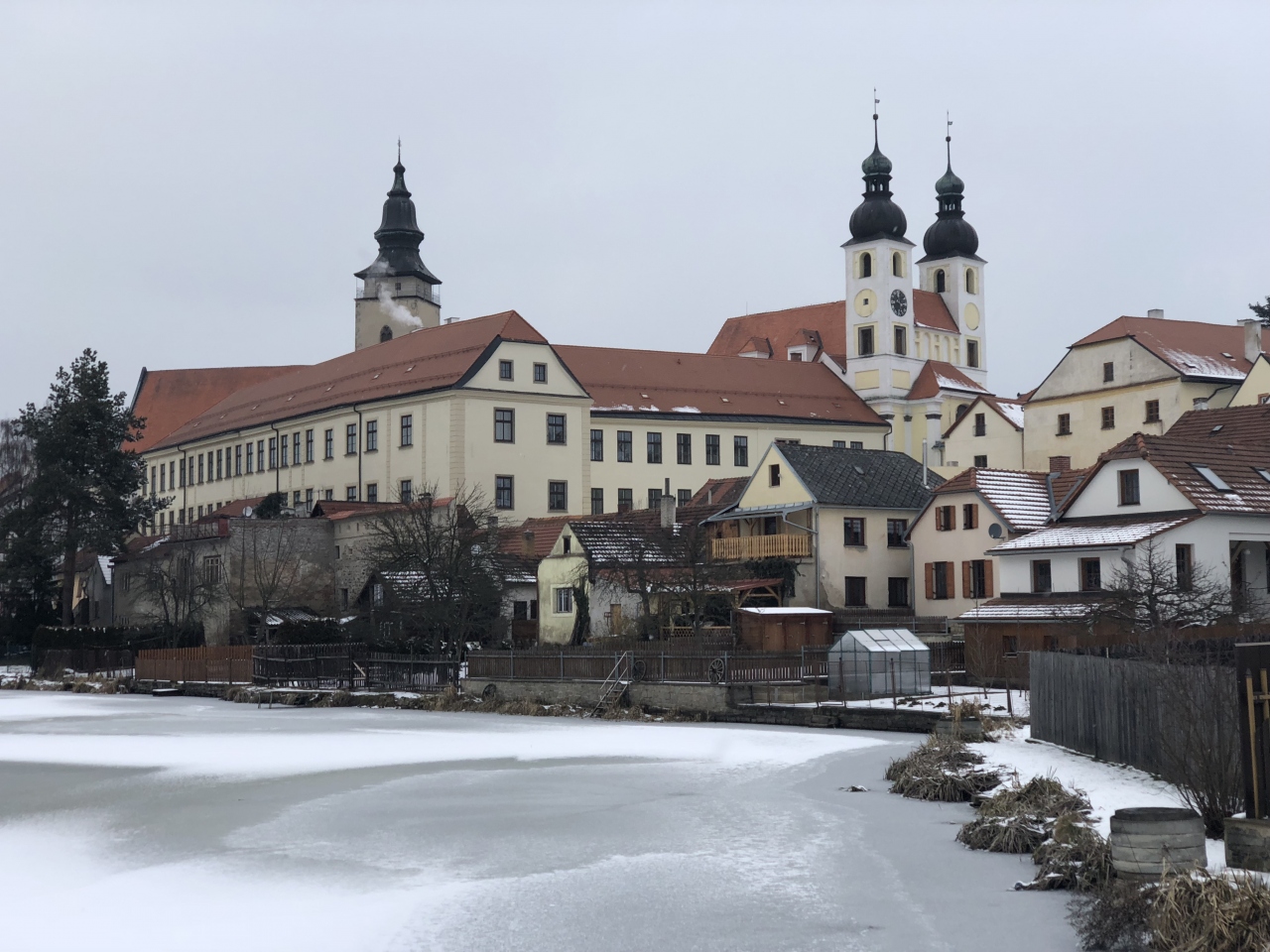 テルチの街を囲む三つの池のひとつです。テルチ城方向から来ると市庁舎の建物を通り越して、次に出てくる通りを左に曲がってまっすぐ2.3分歩くと出てきます。冬に行ったので池が一面凍っていて、池にかかる橋から眺めるテルチの景観は神秘的でした。