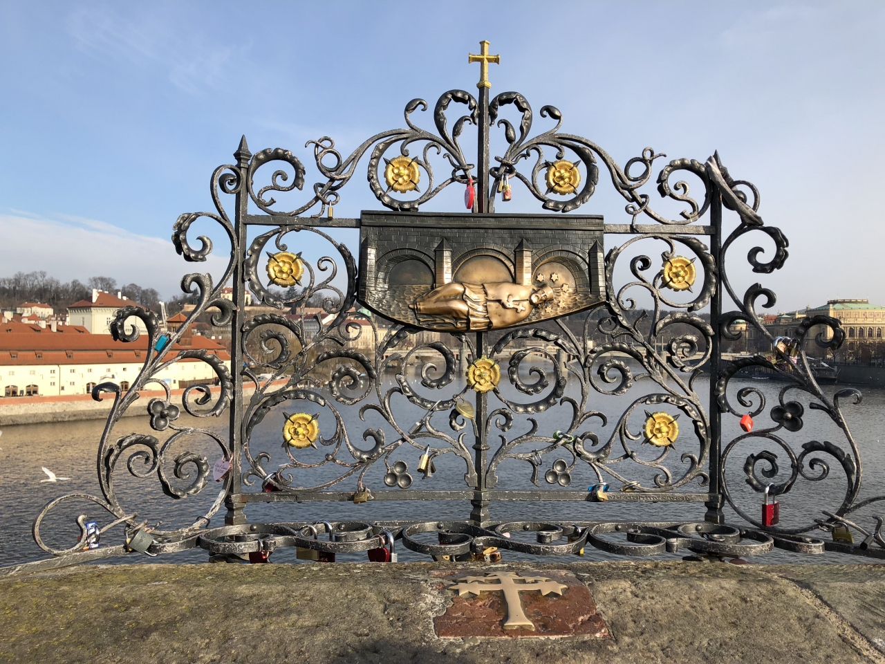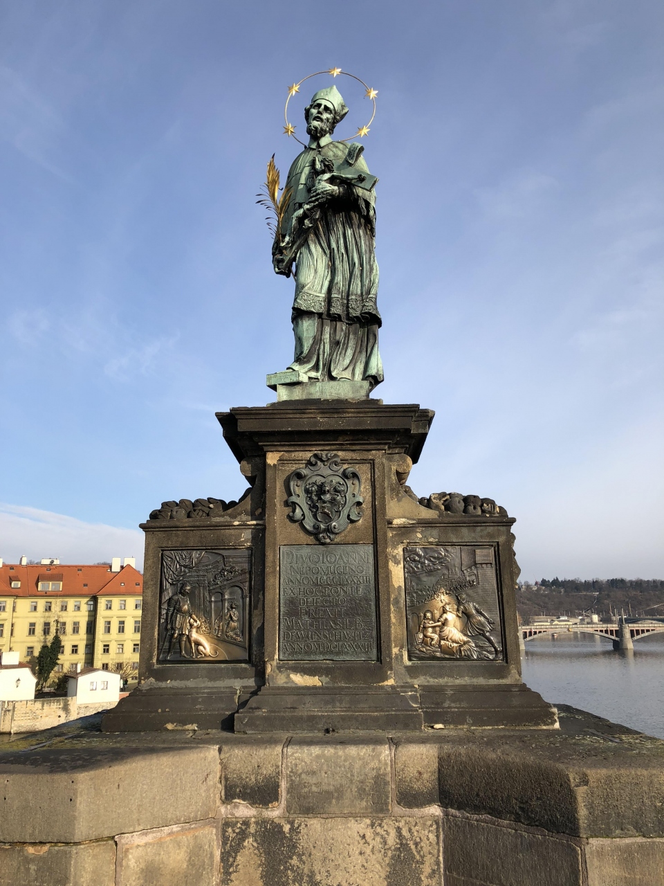 カレル橋の中で最も有名で人気があります。そのわけは像の基部にある