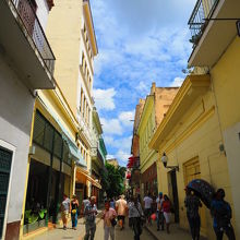 お土産屋さんやカフェ・レストランが多く 朝から晩まで観光客が一番歩いている賑やかな通りです。