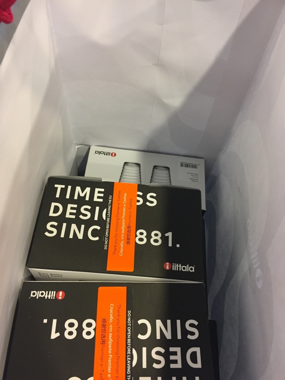 22clのグラスを6つ(2つ×3箱)33clのグラスを4つ(2つ×2箱)購入しました。合計で44€でした。