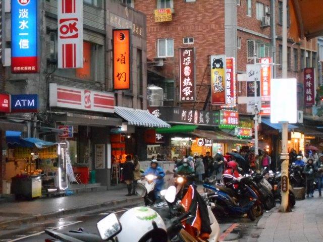 淡水の、川から少し離れますが、川沿いに沿って続く観光客のメインストリートです。食べ物や雑貨などのお店が立ち並び、たくさんの人々で賑わっています。おいしそうな焼き立てカステラのお店、お菓子店、日本と同じような駄菓子の店、かごや竹製品の店、ドリンクショップなど、とても楽しめます。おしゃれなカフェなどもあります。また行きたいです。