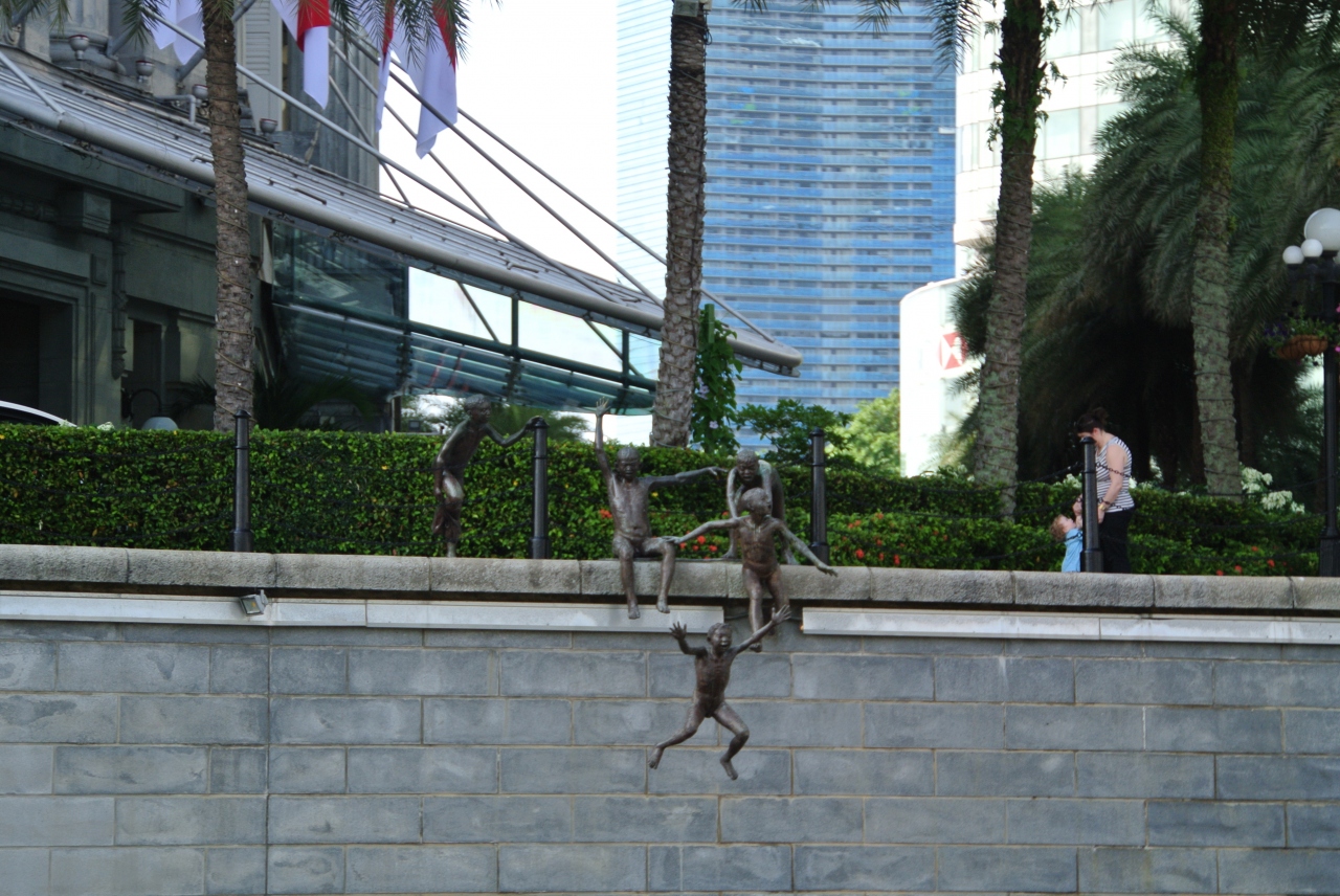私が見たのはシンガポール川に飛び込もうとしている子供たちの像ですが、ほかにもいろいろあるんですね。昔のシンガポールの日常のひとこまを切り取った像です。以前はシンガポールの護岸も現在のようなものではなかったのでしょう。像は目立っているようないないようなちょっと微妙な感じでした。