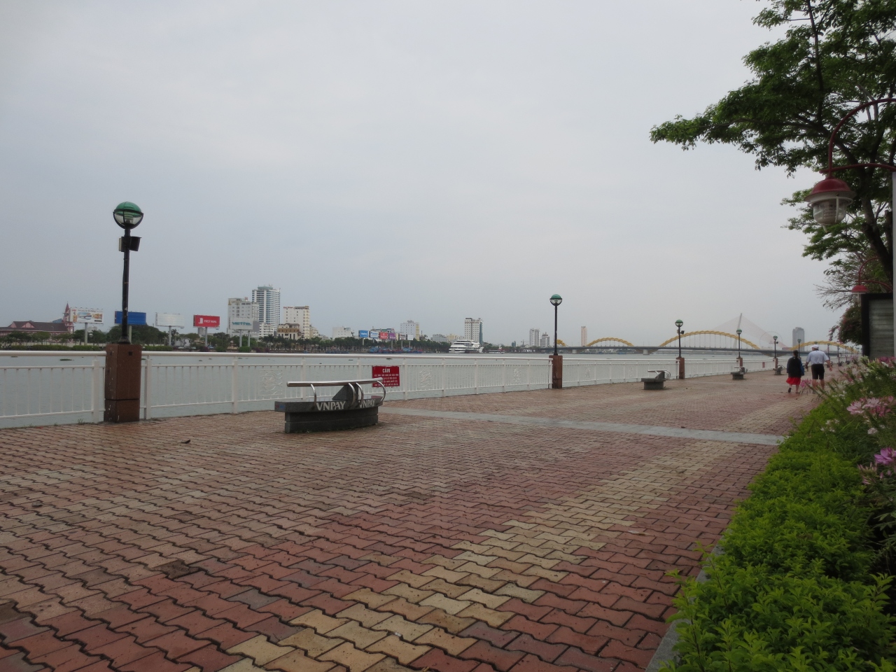 川沿いの道ですが、川は普通の汚いアジアの川なのでこちら側の見所はありません。夜間のライトアップぐらいでしょう。反対側にはカフェなどが立ち並んでいますが、特筆するようなものもなく普通の道です。道路は交通量が多いので渡るのがちょっと大変。